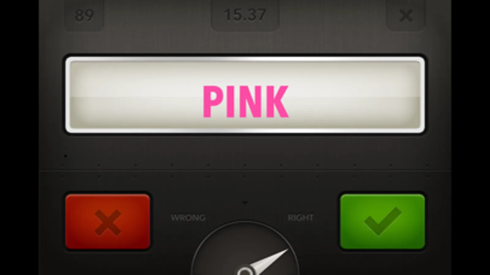 The name of a color is displayed on the screen. Focus and decide if the name matches the font color.