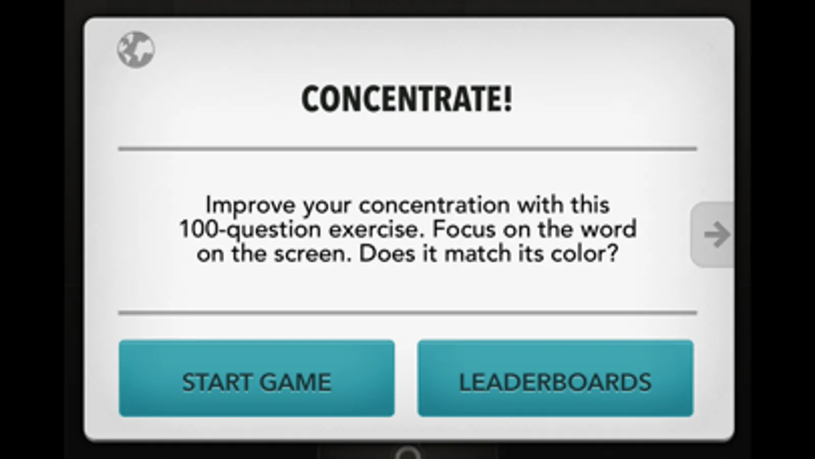Improve your concentration and reaction speed with this simple but effective exercise. Concentrate! offers your brain a real workout by forcing it to resist its impulses.