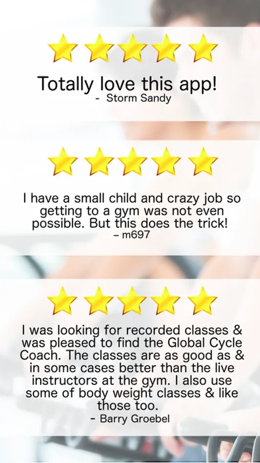 The [cycle] classes are as good as & in some cases better than the live instructors at the gym. - Barry