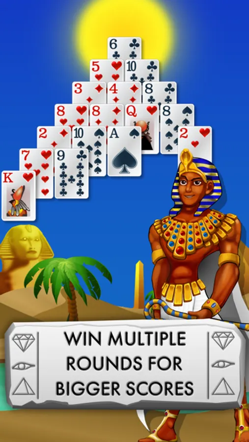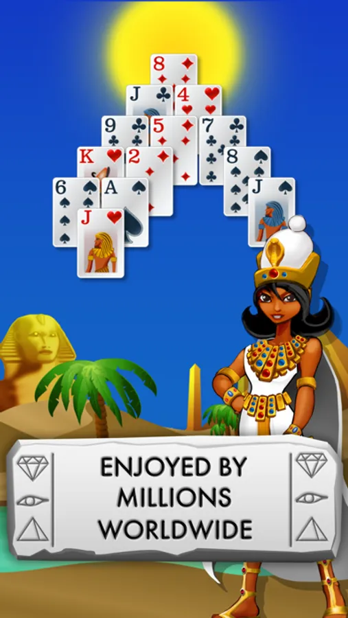 Join the people who have enjoyed Pyramid Solitaire - Ancient Egypt over 1 BILLION times! Play solitaire and build spectacular pyramids for the Pharaoh and Queen while relaxing under the Egyptian sun.