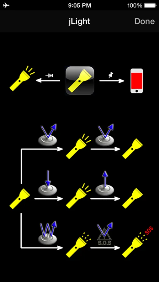 • Double tap for strobe and SOS.