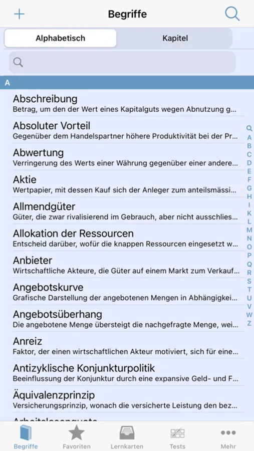 Die VWL-App aus dem hep Verlag basiert auf dem Lehrmittel «Volkswirtschaftslehre» von Aymo Brunetti. Sie enthält alle Begriffsdefinitionen des Glossars – alphabetisch oder nach Kapitel geordnet.