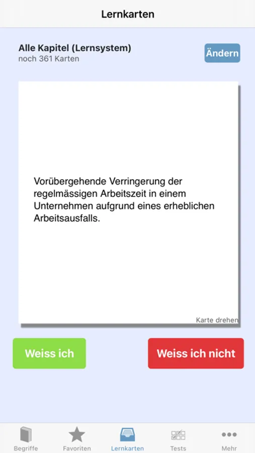 Zudem können neu eigene Begriffe und Lernkarten angelegt werden.