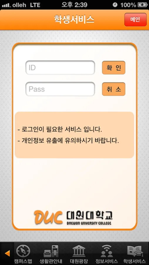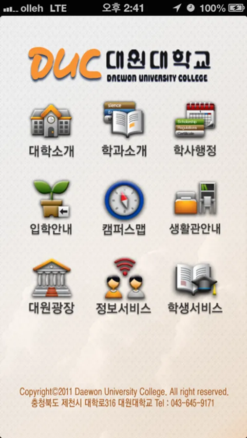 대원대학교 학생 및 교직원을 위한 어플리케이션입니다.