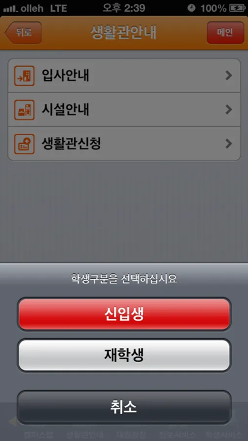 6. 생활관안내 - 생활관 안내 및 입사신청