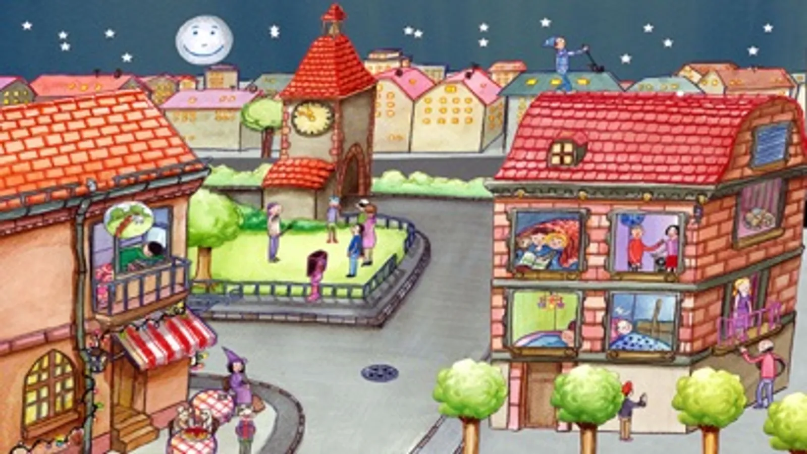 Three lovingly hand-drawn and colored scenes show the city life at different times of the day. And there’s so much to be discovered!