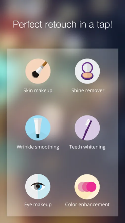 * Skin makeup (skin smoothing, including removal of face shine, imperfections and wrinkles)