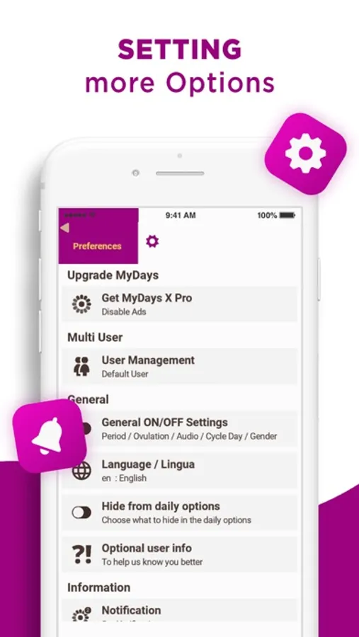 • Disable Daily Options, for example for kids or when you don't like to come pregnant