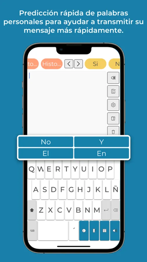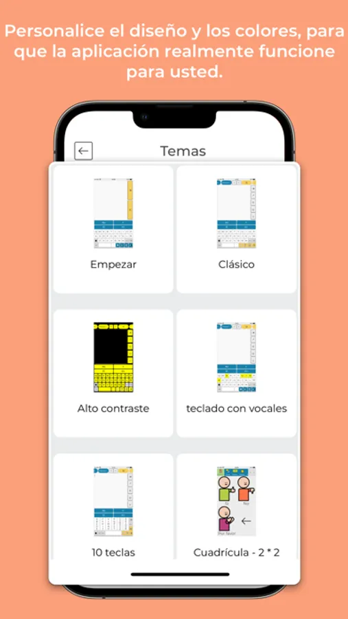 Diferentes opciones de teclado para elegir (10 teclas, QWERTY, ABCD, alta frecuencia, Apple y cualquier otro teclado Bluetooth).
