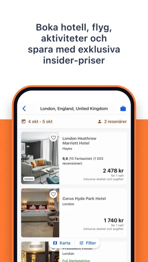 • Sort by price, deals or reviews to find your perfect hotel rooms