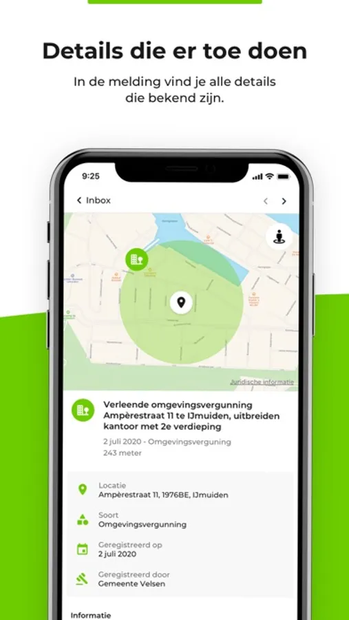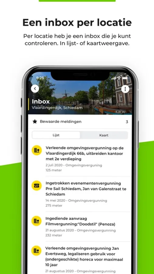 Deze app toont je de actuele vergunningsaanvragen voor de omgevingsvergunningen bij jou in de buurt (of rond een ander adres naar keuze). Op deze manier kun je eenvoudig zien waar er plannen zijn die jouw leefomgeving kunnen beïnvloeden: Een dakkapel van je achterbuurman, een kapvergunning van bomen in de buurt, een schutting of reclamebord naast je huis, industrie in de buurt... Je komt het allemaal te weten: Op een duidelijk kaartje, een overzichtelijk lijstje of met handige push-berichten, wat jij wil! (Voorwaarden: https://www.omgevingsalert.nl/voorwaarden)