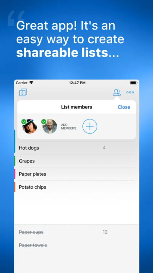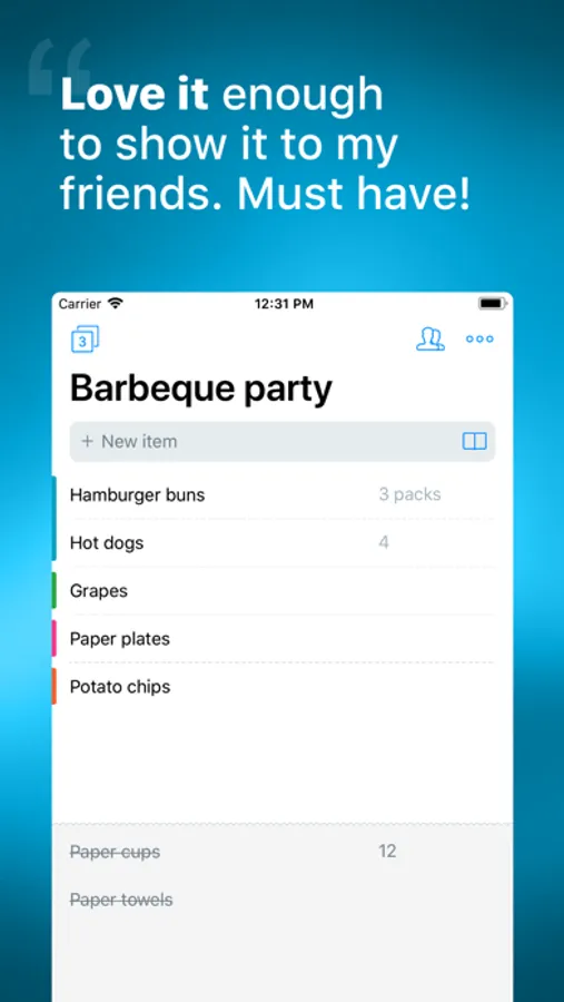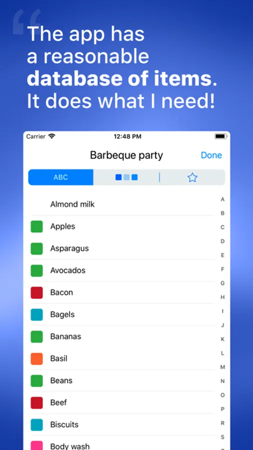 * SMART GROUPING. Group your products by aisles with the help of colors assigned to the items, and the app will group the items in the list automatically;