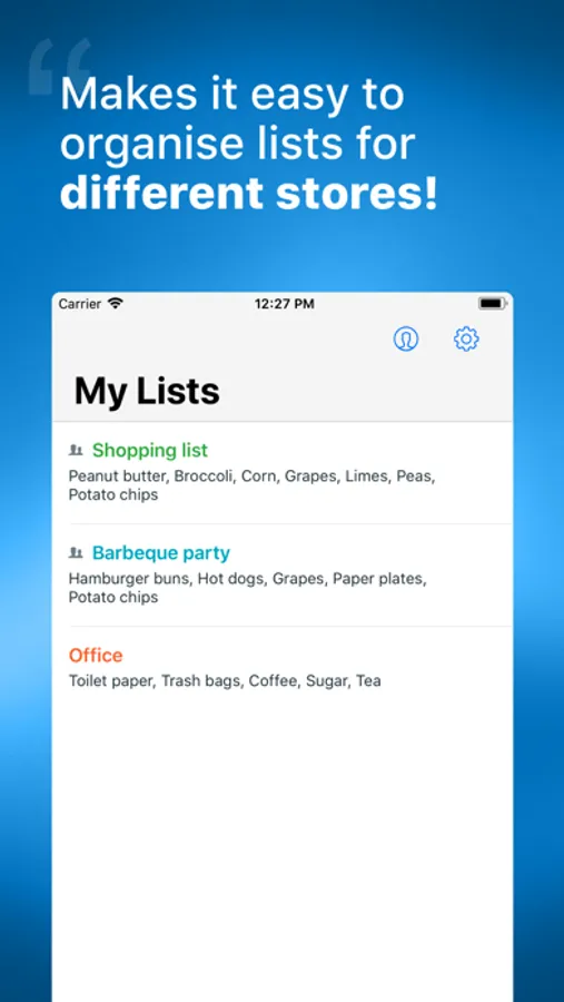 * MULTIPLE SHOPPING LISTS organized into the convenient list of lists with the preview of their contents;