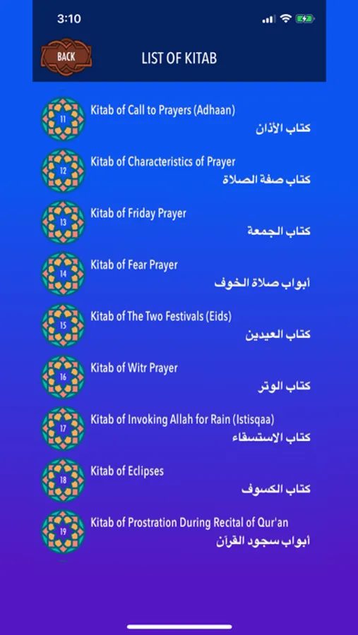 3. More than 7000 Hadith collections under specific list of Kitabs (books) segregated under different topics.