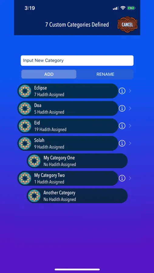 7. Create & manage your own category & select Hadith to be in your customized category.