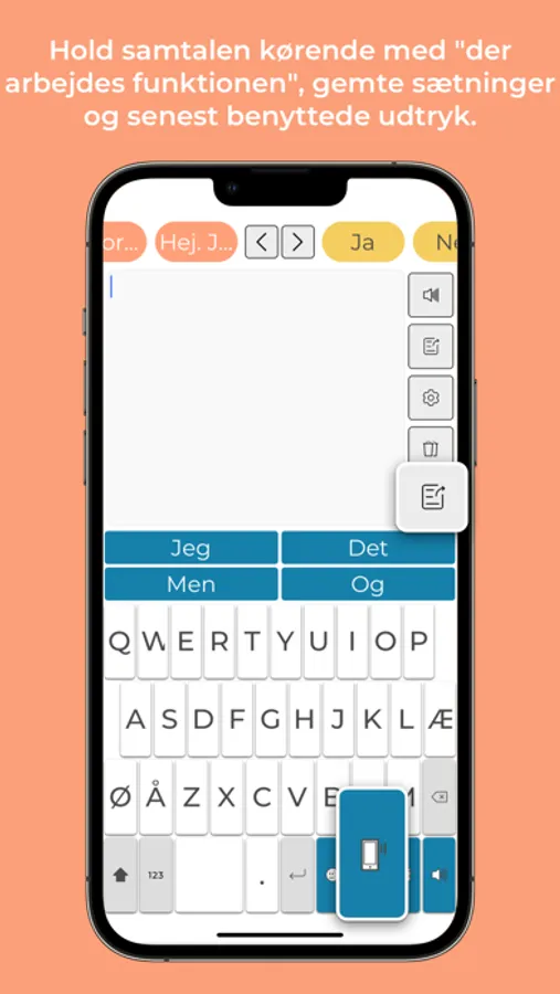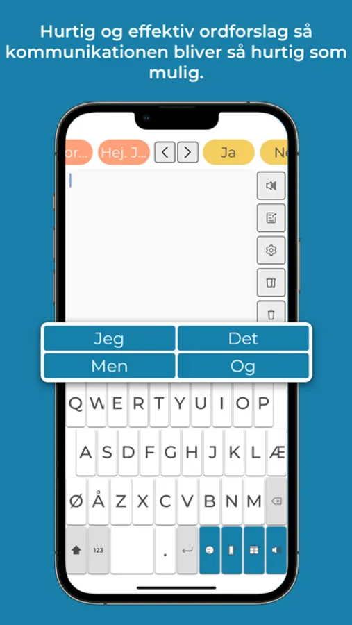 Ved hjælp af en intelligent prædiktion (forudsigelse af ord) gør app'en det effektivt og hurtigt at få udtalt skrevne beskeder.