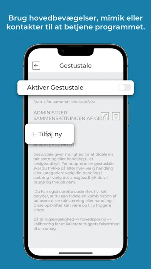 Hovedbevægelser: brug hovedbevægelser til at styre markøren og dermed app’en (kun tilgængeligt på Pro enheder)