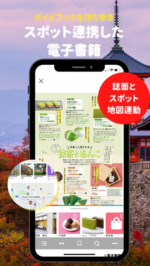ガイドブックの取材で集めた選りすぐりの観光・グルメスポットを収録しています。