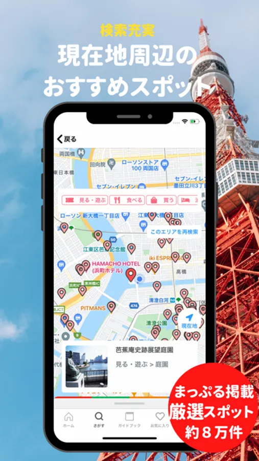 ・旅行先で、周辺の観光・グルメスポットをすぐ探したい