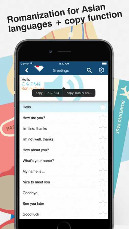 Tap & Say is an all in one world phrasebook covering 17 languages. Each language has over 600 essential phrases categorised and translated with accompanying spoken audio pronunciation by a native speaker.