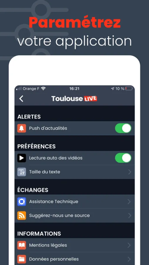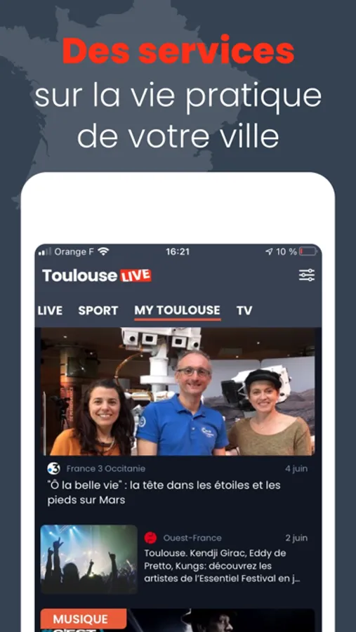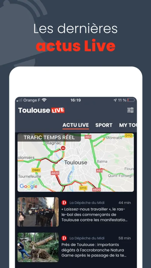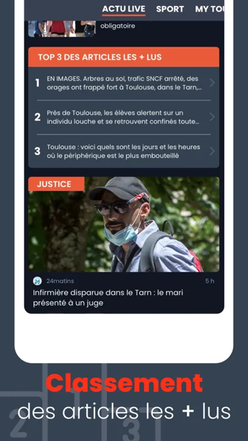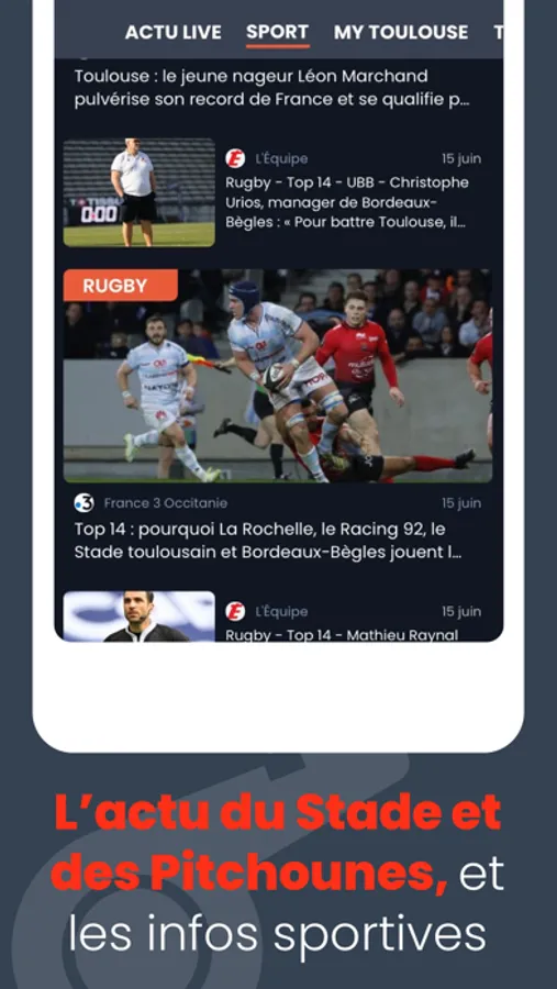 • Accédez aux dernières informations en temps réel à travers nos rubriques thématiques : Actu Live, Sport, My Toulouse, TV.