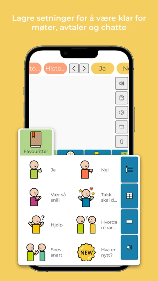 Kategorier i Predictable lar deg lagre uttrykkene eller setningene du ofte bruker så du enkelt kan hente dem når du ønsker å bruke dem i en samtale.