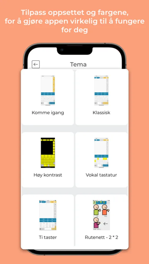 Forskjellige tastaturer å velge mellom (10 taster QWERTY, ABCD, Høy frekvens, Apple og alle andre Bluetooth eller nedlastbare tastaturer).