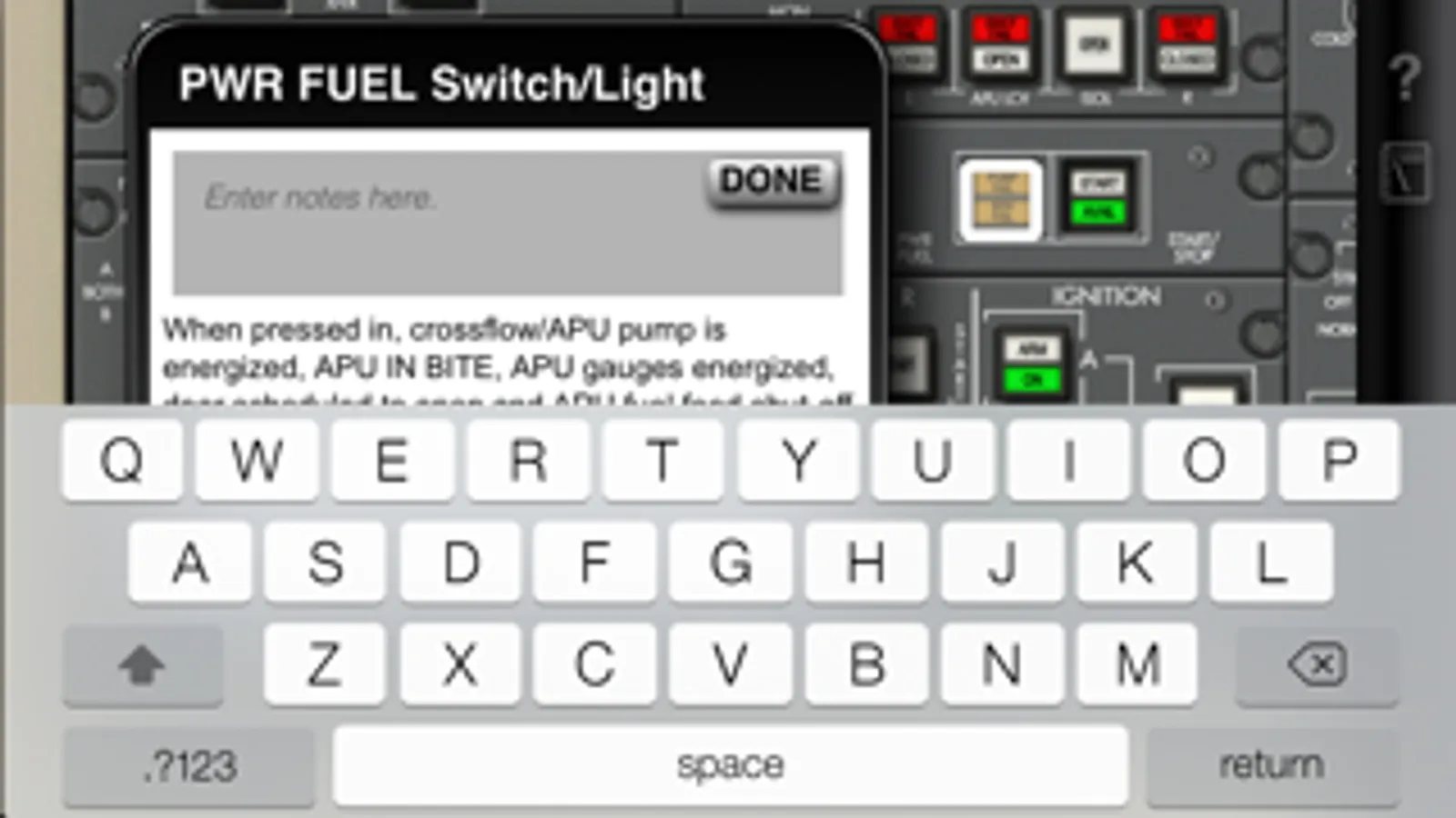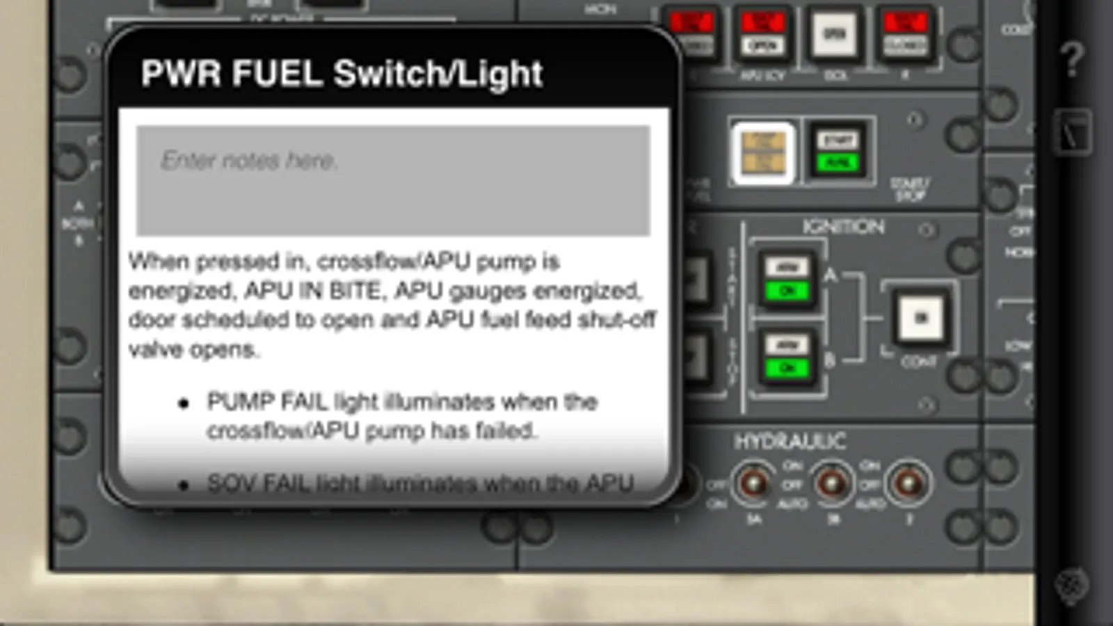 • Quick study tool for oral exam and checkride preparation – quiz yourself on cockpit switches, lights, and other indications