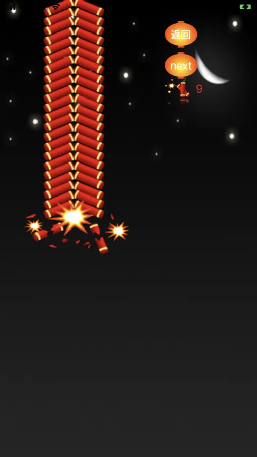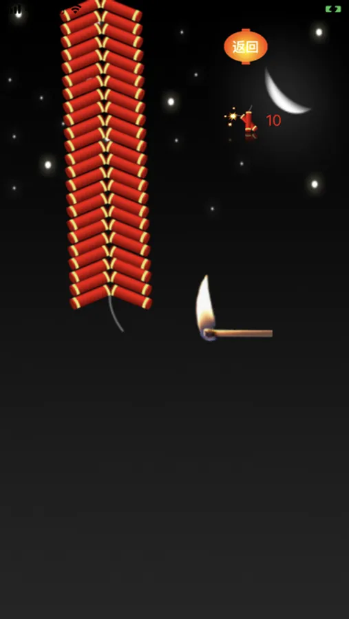 3.玩法提示,火柴会随手指移动,移动到下面引线附近,就可燃放
