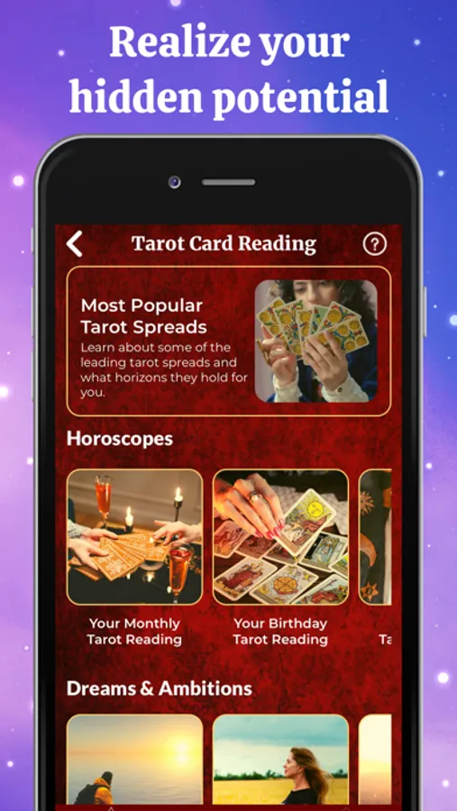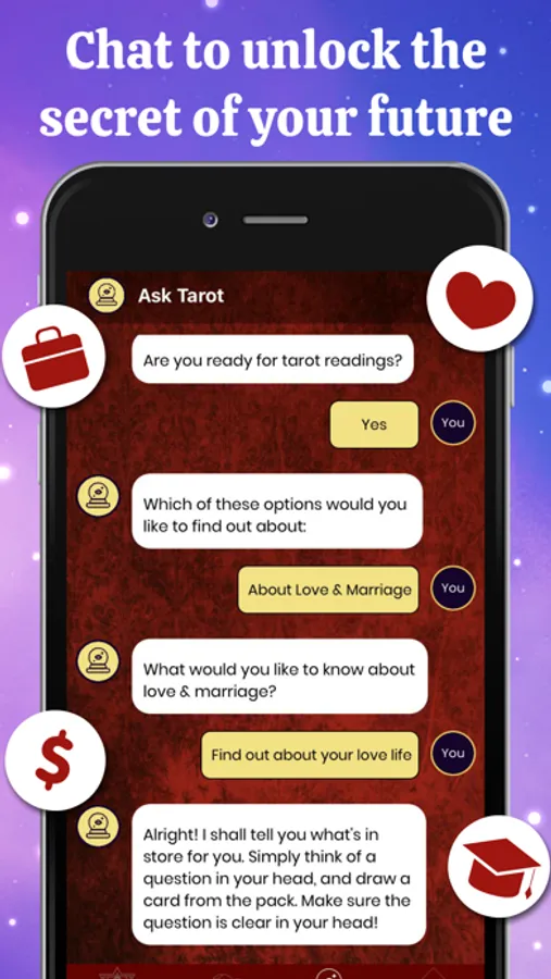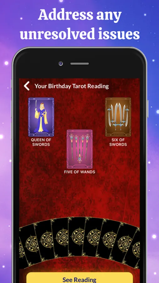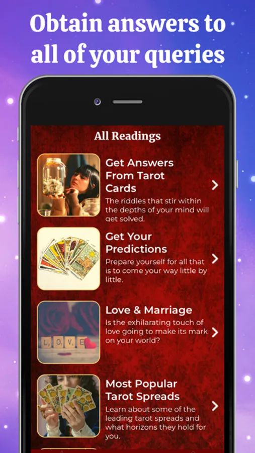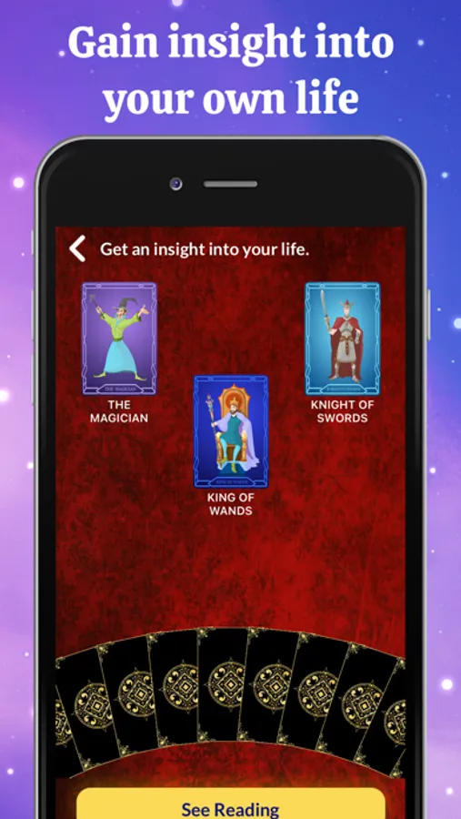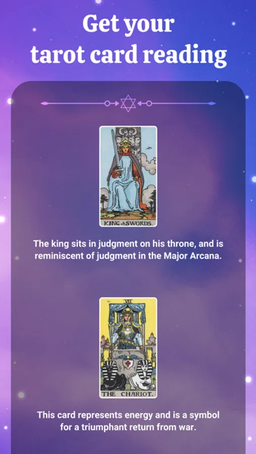 GET YOUR ANSWERS: the app uses all the 78 Tarot cards including 22 Major Arcana and 56 Minor Arcana, based on the Rider-Waite deck,