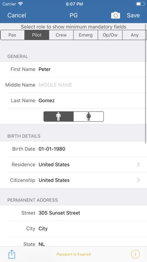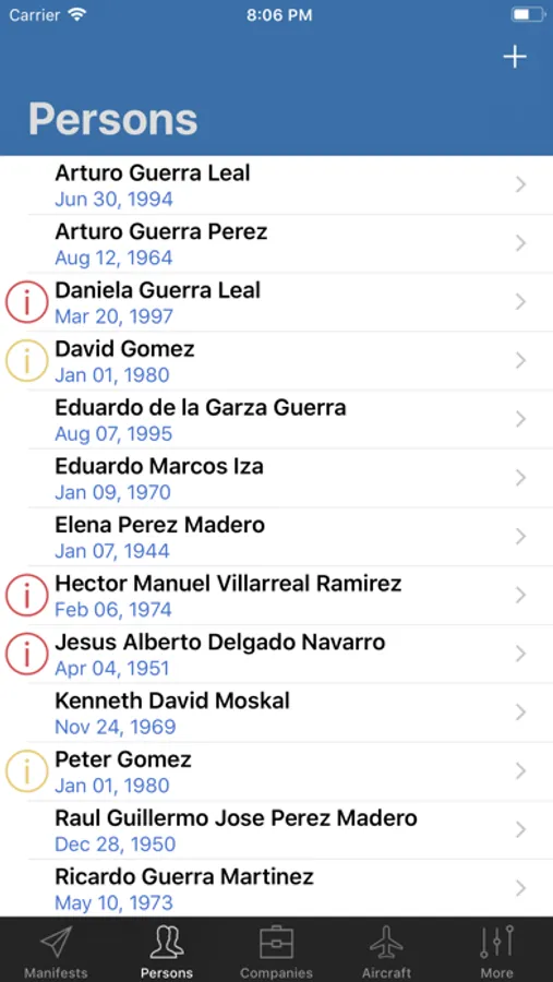 • Track your document expiration dates and status. Including passports, licenses, aircraft decals, etc.