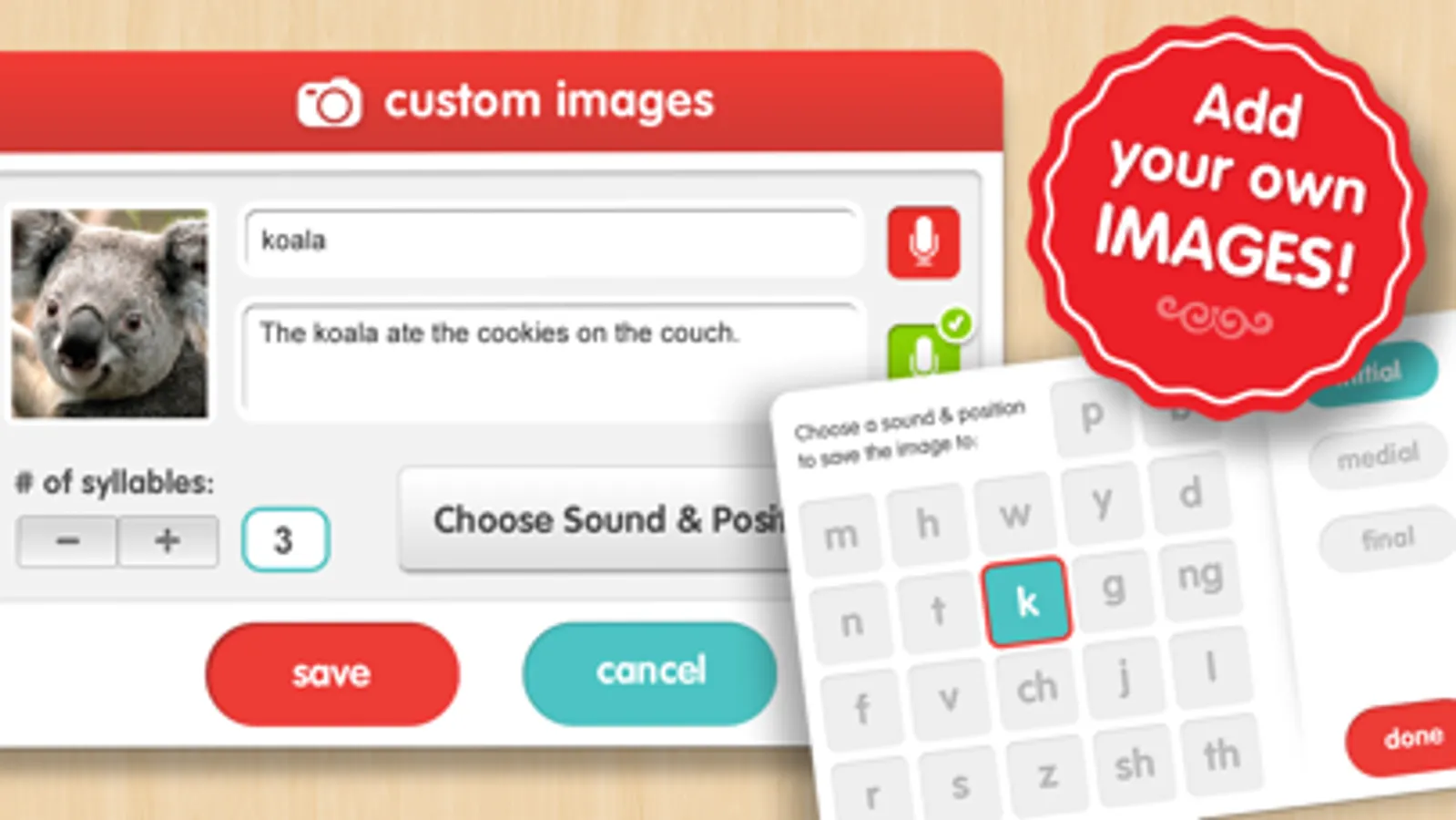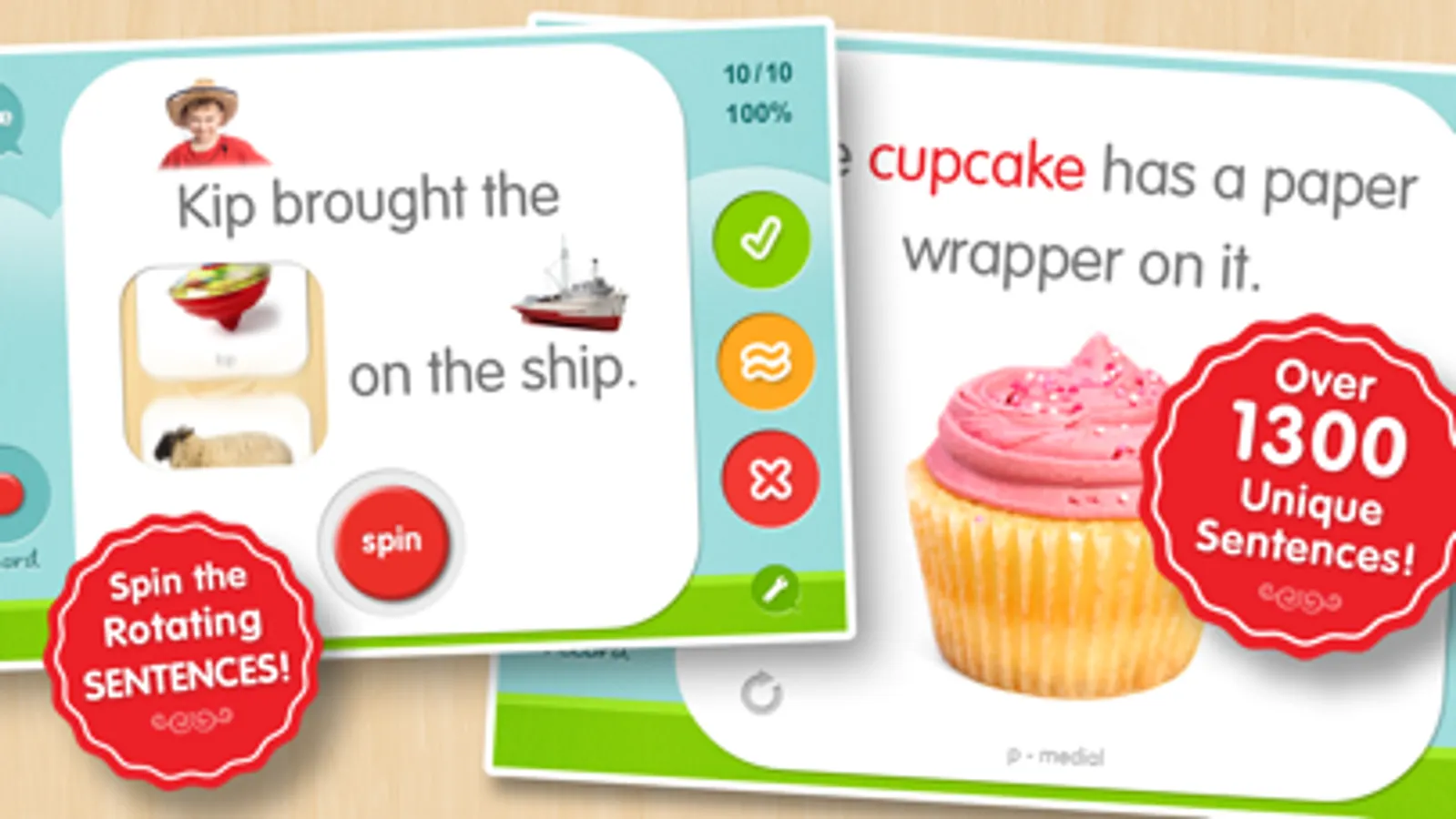 Fixed sentence loaded with target sounds and paired with rotating target words.