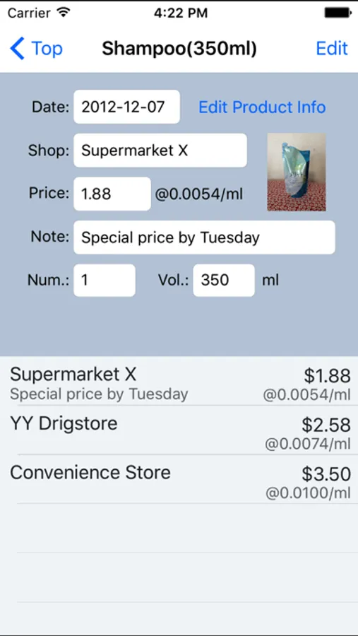 Select the product from the list→Tap [Edit Product Info] button→Change equal to the volume of the product which you want to match→Tap [Update] button→Tap [OK] button in dialog box