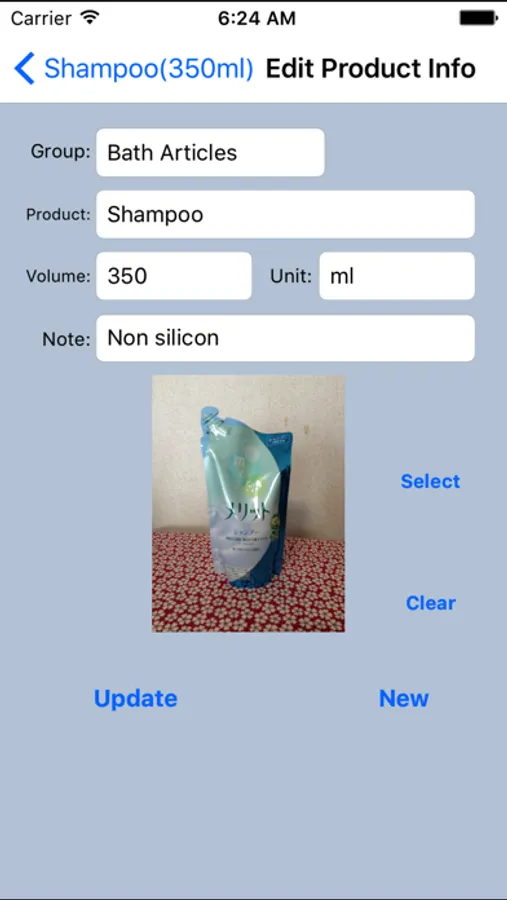 Select the product from the list→Tap [Edit Product Info] button→Tap the group field→Change the group→Tap [Update] button