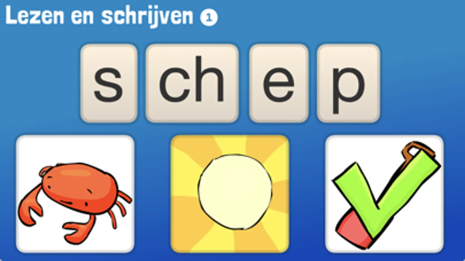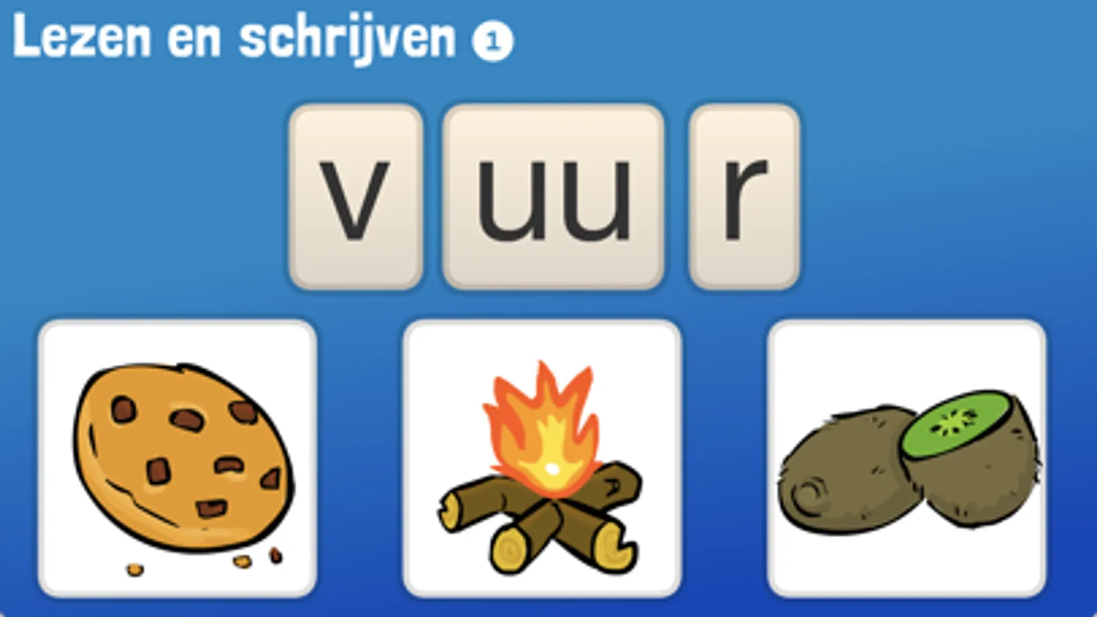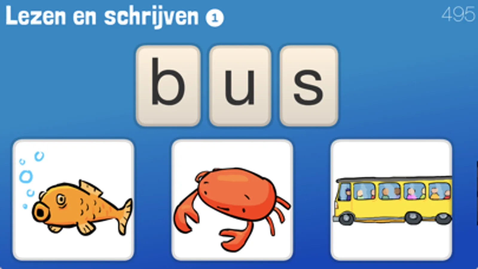 Dit educatieve spel laat je kennis maken met de vormen en klanken van de eerste Nederlandse basisschoolwoorden.