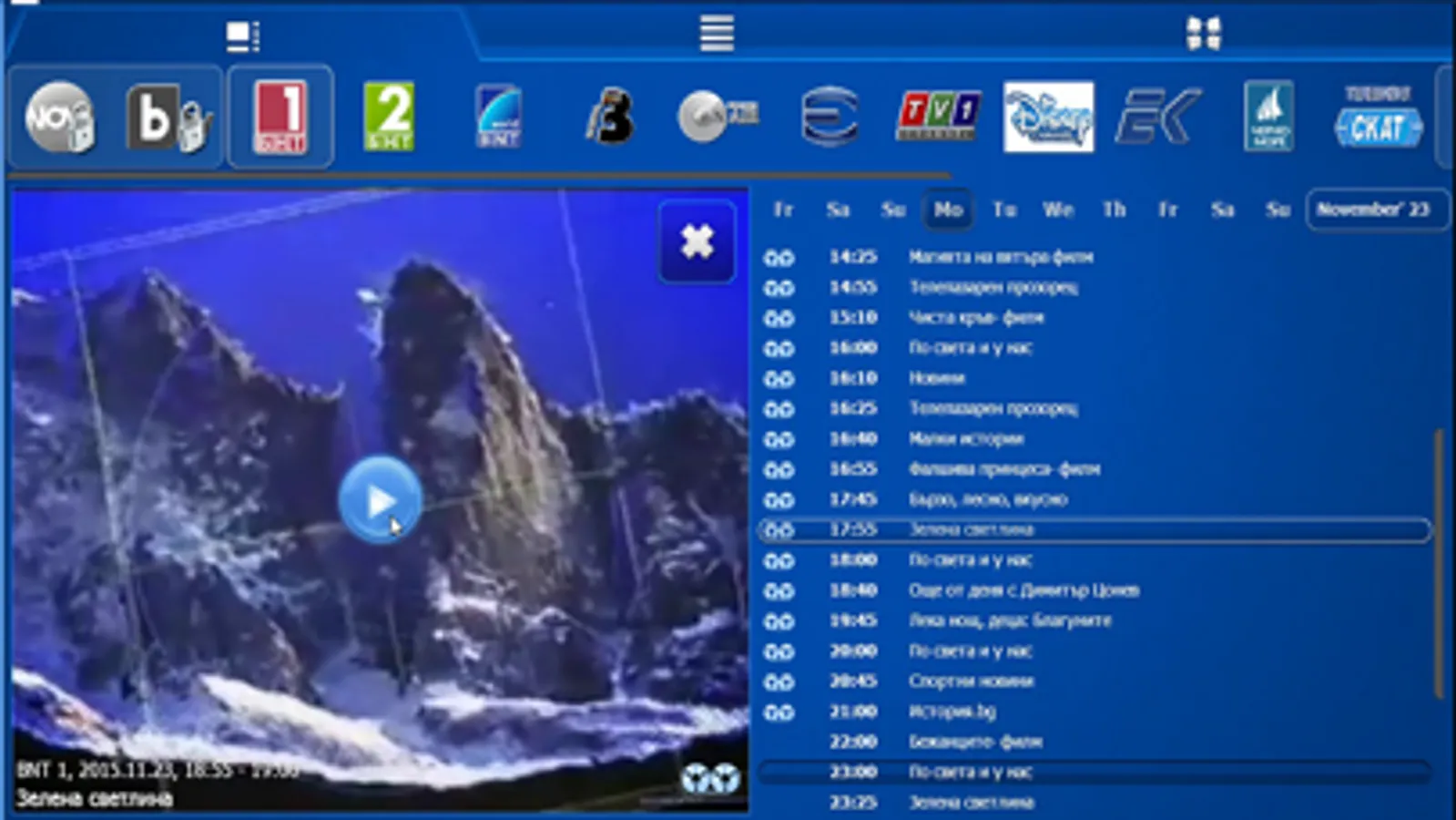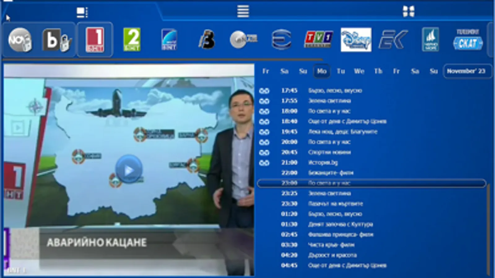 Гледайте най-популярните телевизионни канали в България където и да се намирате. С отлично качество на изображението и лесно меню за навигация.