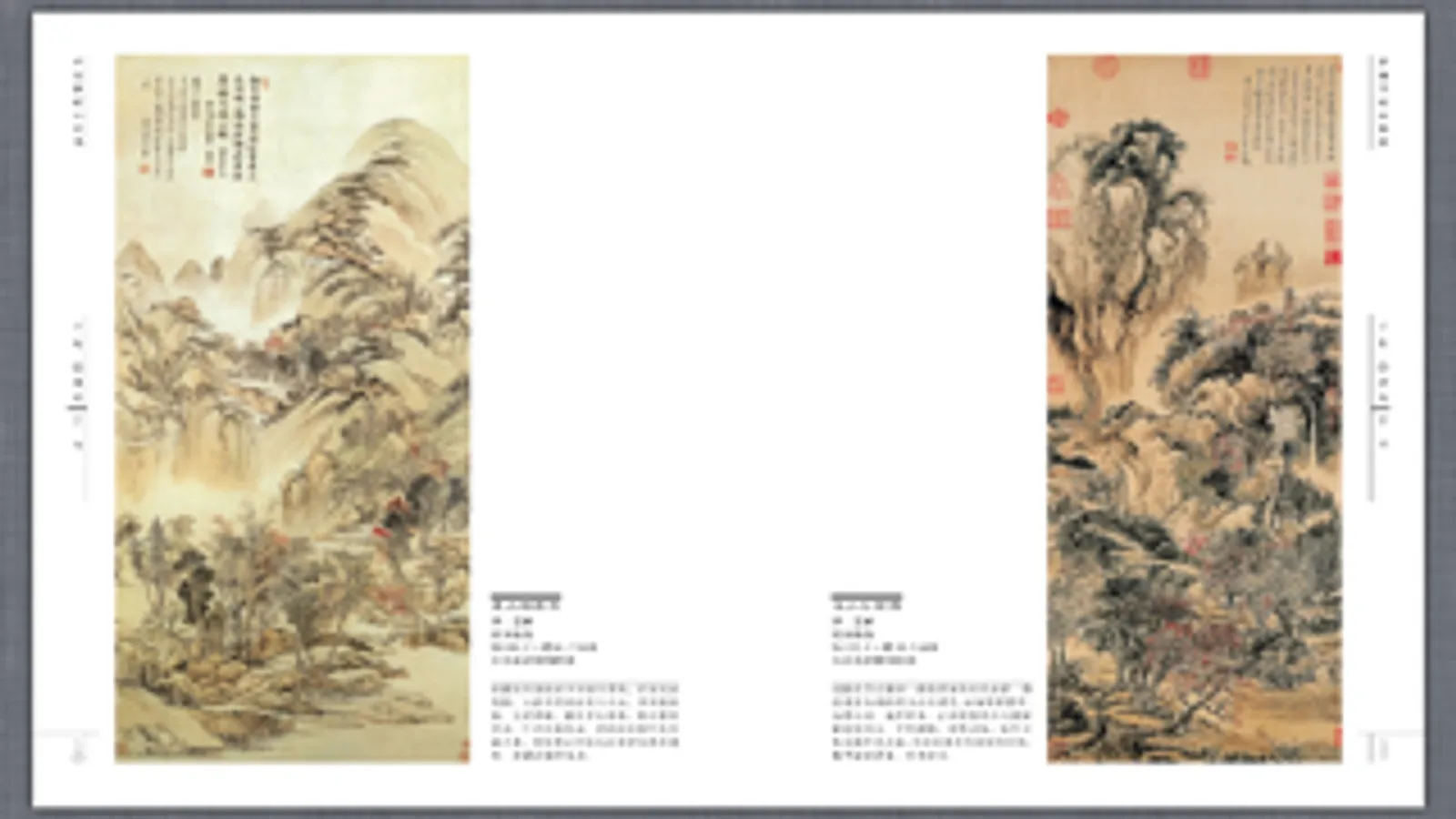 Landscape painting is the ancient Chinese painting three large painting of the most representative of Chinese philosophy and Chinese painting aesthetic painting. Since the Wei and Jin Dynasty, yuan, Ming, Qing Dynasty two thousand years of the development process, appeared the green landscape, landscape painting, literati garden are descriptive; Masters come forth in large numbers, the Sui Dynasty, Tang Dynasty, Zhan Ziqian Li Sixun, Jing Hao five generation, Guan Tong, D Yuan, Li Cheng, northern giant ran; Fan Kuan; four: the Southern Song Dynasty Li Tang, Ma Yuan, Xia Gui, Liu Songnian; Yuan four: Huang GongW, Wu Zhen, W Meng, Ni Zan Ming Shen Zhou, Wen;