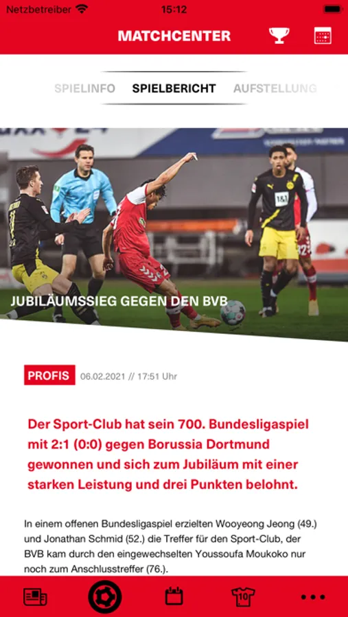 • Matchcenter mit dem offiziellen SC-Live-Ticker, Aufstellung vor dem Spiel, umfangreiche Vor- und Nachberichte und vielem mehr.