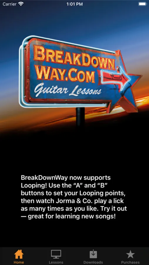 Now with BreakDownWay Lessons on your iPhone you can have the mobility to study the lessons on the road, while in flight, at the office, or on your TV screen. Even if you happen not to have an instrument available, it is a terrific way to refresh your memory, find some notes you may have missed, and to be reminded to “keep the groove”!