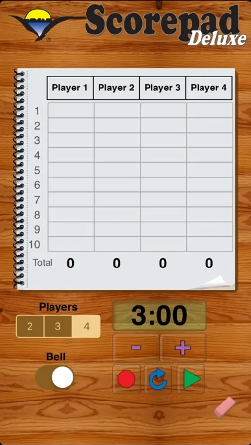 Scorepad Deluxe has several functions to enhance your game playing experience. Paperless scoring makes an ecological statement, but even more so, this easy to use digital score keeper, frees you to concentrate on the game play. Timer functions include a user selected audible sound effect to signal the end of a turn.