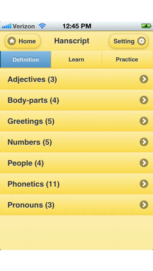 Grids are now optionally displayed during practice mode. Go to Settings page to enable or disable the grids. The grid helps one to copy the Chinese character more easily onto paper. Two type of grids are provided: square and diagonal.
