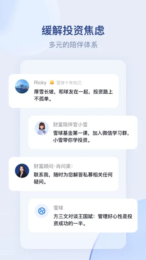 用户、主理人、专业机构、雪球团队,为你提供多元的陪伴体系。