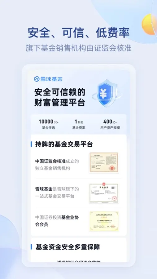 雪球基金为持牌基金销售机构,提供基金销售服务;银行全程资金监管,并在费率上极具市场竞争力。