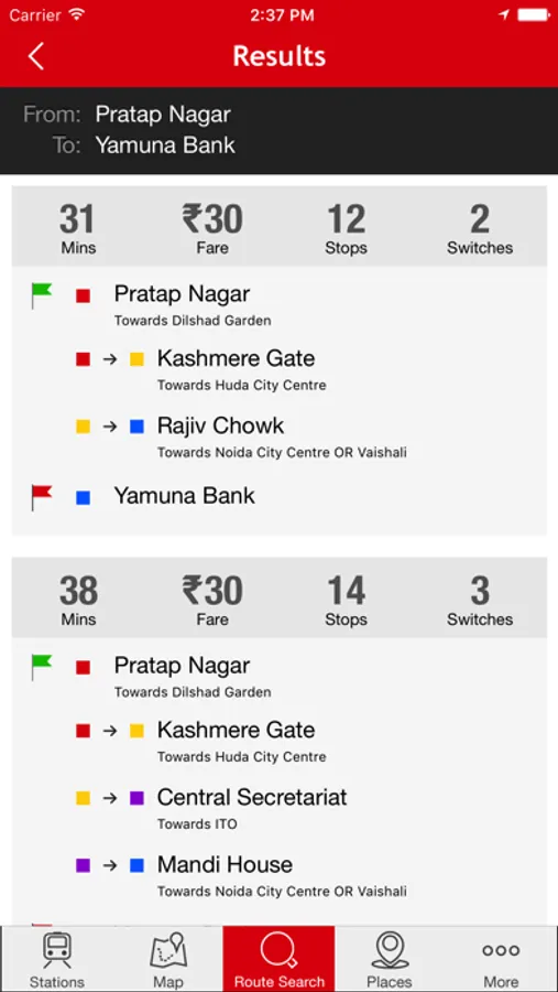 "Delhi-NCR Metro" is one of the best rated app of Delhi metro for its user-friendly design and superior features like Route search, Search by location and address using Map, Interactive route map to calculate fare and time from station A to station B by simply tapping on the screen, Categorically segregated places list of Delhi-NCR zone and much more.