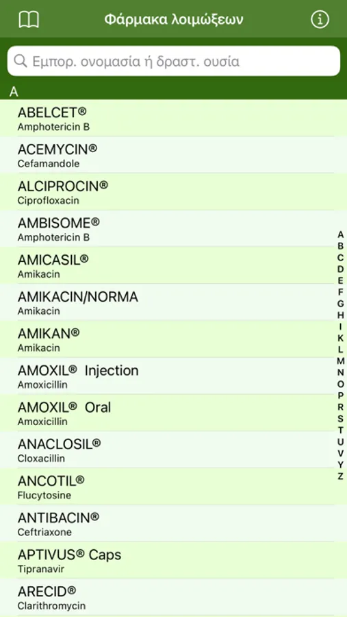 Attention!! The 'Greekdrugs: Λοιμώξεις' application is fully localized in Greek!