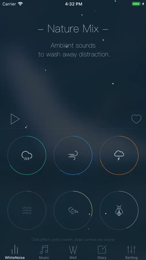 Add 6 natural white noises to simulate the most natural sound. And groundbreaking implementation of unlimited mixing, you can easily mix their own unique kind of.
