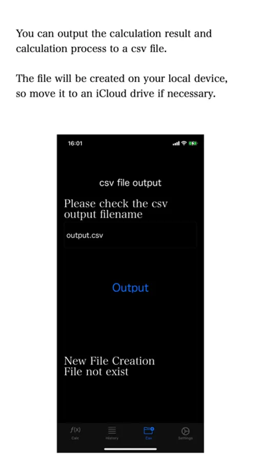 The CSV file outputs the calculation process and calculation result of the time calculation in this app.