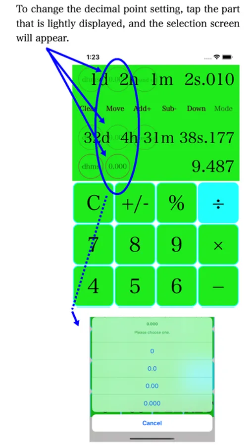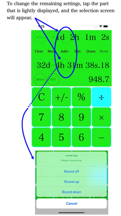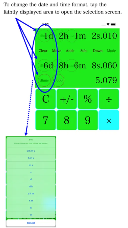 This app can be calculated by the combination of a variety of time. (seconds, minutes, hours, days)