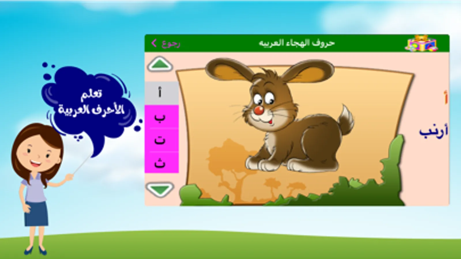 اول برنامج في العالم العربي يمكن اطفالنا من تعلم اساسيات اللغه من حروف الهجائيه والارقام واسماء الحيوانات والفواكه .