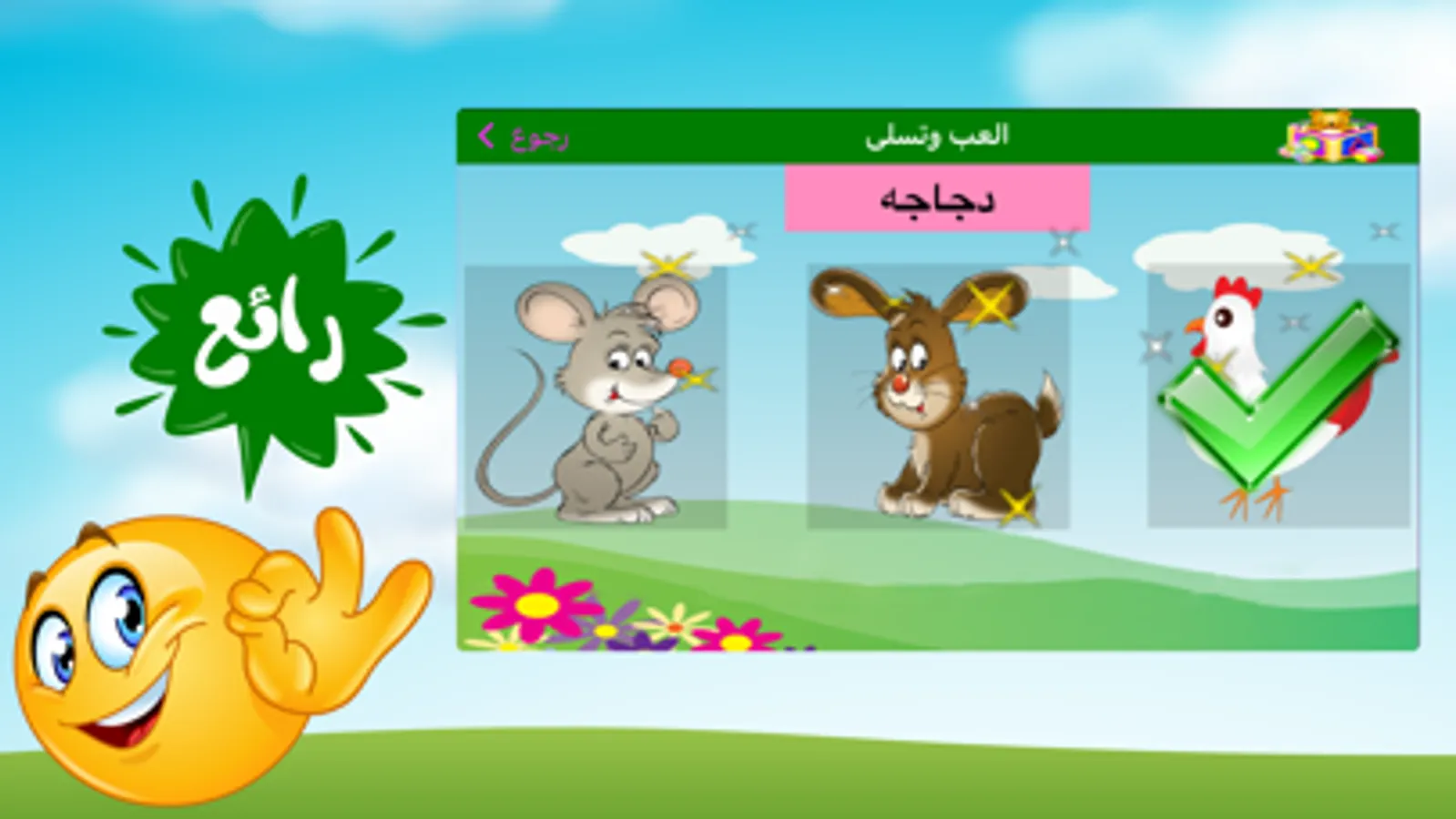بواسطة هذا البرنامج يمكن للطفل ان يتعرف على انواع الفواكه والخضراوات ،الطيور والحيوانات بطريقه سهله ومشوقه